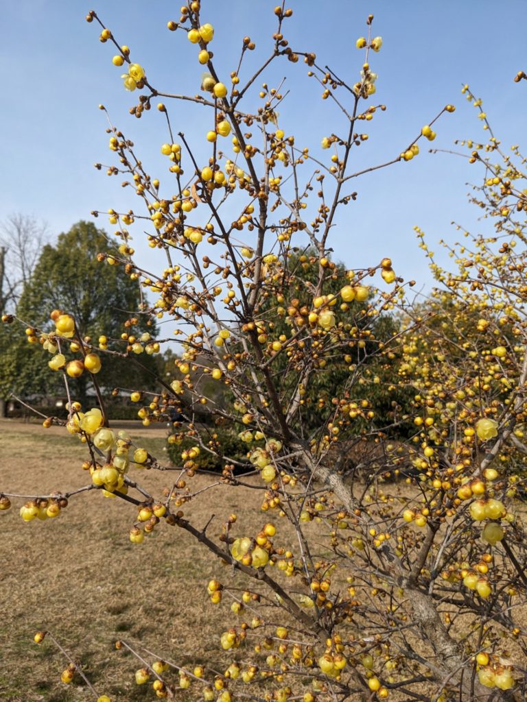 あけましておめでとうございます 丘陵公園の黄色の梅もよい香りです